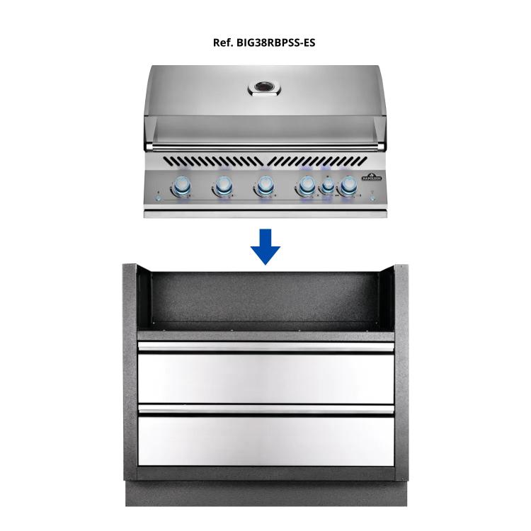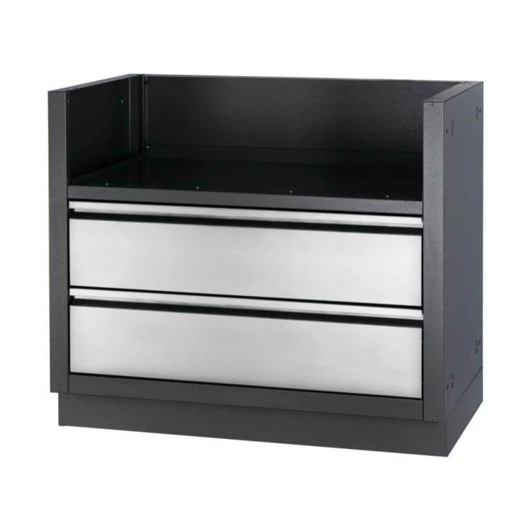 Произведен специално за капаците на вградената скара от серия 700 38, този шкаф от галванизирана стомана, покрит с прахово боядисване и в цвят въглен, има система за покритие с два слоя камъчета за по-голяма издръжливост. Разполага с чекмеджета от неръждаема стомана, монтирани върху две плъзгащи се релси за съхранение под скарата. Инсталирането е много лесно благодарение на заглушените отвори за газ и електричество. Нивелиращите крачета осигуряват равна повърхност, дори ако вашата тераса не е напълно равна. Комбинирайте този шкаф с капака за вграден газов грил от серия 700 38 и шкафовете OASIS®, за да се насладите на открит грил OASIS®, съобразен с вашите нужди.