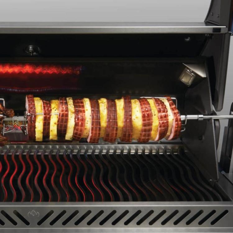 Ястията, приготвени на роштиля, са най-вкусни. Те са сочни и апетитни и всички ги обичат. Използвайте комплект шишчета с търговско качество от Napoleon за вашия газов грил Prestige® PRO 825, за да приготвите ястия с ресторантско качество в собствения си двор. олемият шестостенен шиш с професионален мотор е подходящ за всяка задача, която му възложите. Професионалните 4-зъбни вилици за месо задържат храната на място с лесни за употреба пеперудни винтове. Има дори и противотежест, в случай че готвите за цяла армия.