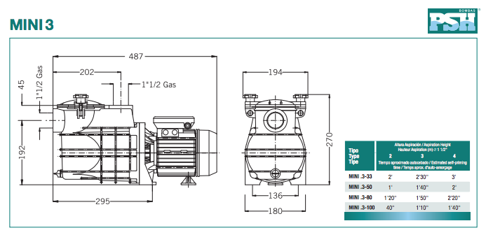 • Предлага се в 4 модела: 1/3 CV (MINI-33), 1/2 CV (MINI-50), 3/4 CV (MINI-80) и 1 CV (MINI-100).