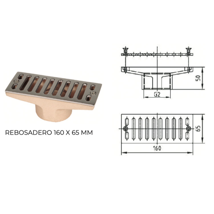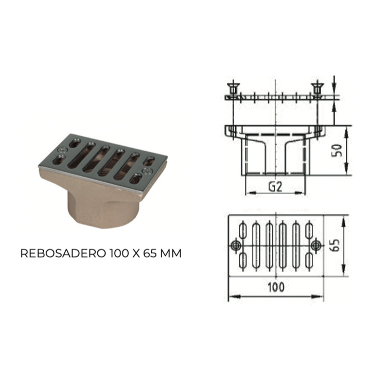 Бронзови преливници, с 2" долно входен отвор с вътрешна резба и решетка от неръждаема стомана с покритие V4A.