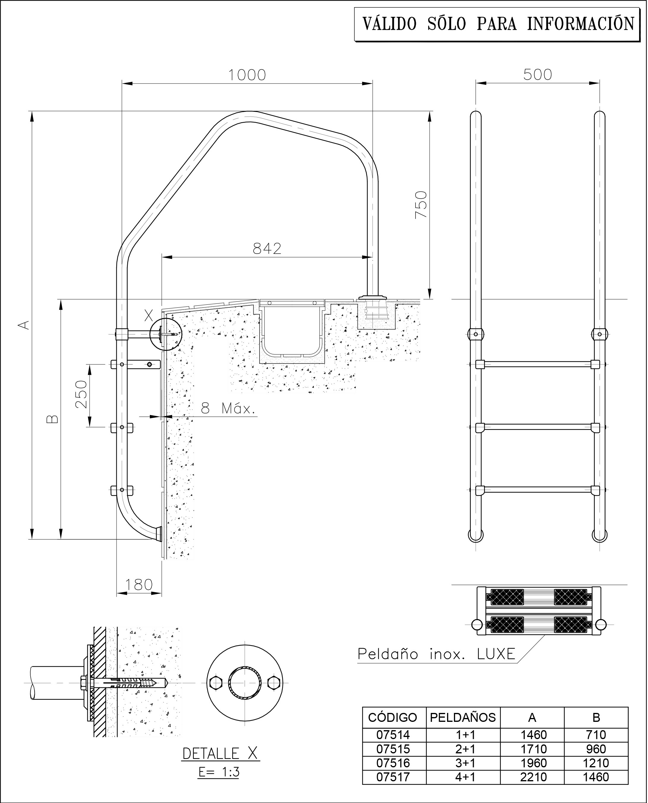 Парапет Ø 43 mm, стъпала от неръждаема стомана с нехлъзгаща се повърхност, ярко полирани, с анкери за свързване към еквипотенциална верига и подвижен анкер с пластина за закрепване на стена.