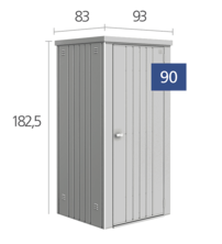 радинският шкаф се предлага в 3 размера (90, 150 и 230) и 4 цвята (сребрист металик, кварцово сив металик, тъмно сив металик и тъмнозелен).