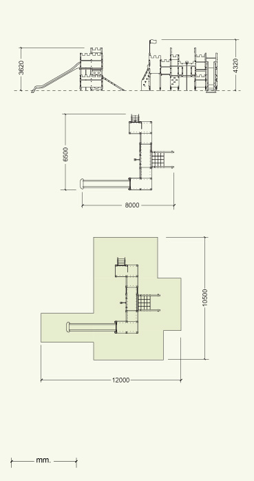 • Комплект, състоящ се от четири кули с наклонени покриви и платформи с размери 100x100 cm.