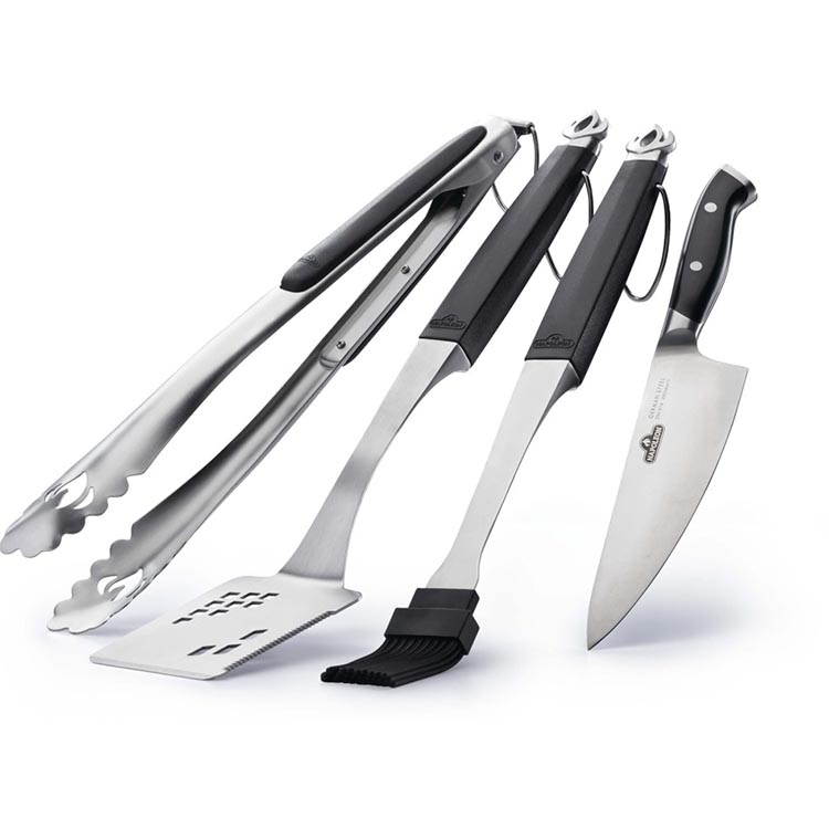 Das 4-teilige Executive-Set von Napoleon besteht aus gegossenem Edelstahl mit ergonomischen, komfortablen Griffen. Das Executive-Kochmesser, das einzige Messer, das Sie jemals brauchen werden, ist aus scharfem deutschen Stahl gefertigt. Es ist das ideale Allzweckmesser. Der große Spatel eignet sich mit seiner Spitze zum einfachen Anheben von Speisen und seiner gezackten Kante zum Schneiden und Zerteilen perfekt für Steaks und andere herzhafte Gerichte. Die leicht zu schließende Edelstahlzange ist immer einsatzbereit und lässt sich dank ihres komfortablen Griffs leicht greifen und Ihre gegrillten Köstlichkeiten bewegen. Vergessen Sie nicht, die Sauce mit dem Silikon-Marinierpinsel zu beträufeln. Werden Sie zum Grillmeister mit dem 4-teiligen Executive-Set von Napoleon Mit ihrer Praktikabilität, Vielseitigkeit und einfachen Pflege sind die Grillzubehörteile von Napoleon eine Bereicherung für jede Küche. Unser Zubehör bietet Ihnen alles, was Sie für die Zubereitung köstlicher Grillgerichte benötigen, sowie Optionen zur Erweiterung Ihres Küchenarsenals mit einer Vielzahl kreativer Zusatzgeräte, mit denen Sie Ihre kulinarischen Horizonte erweitern können.