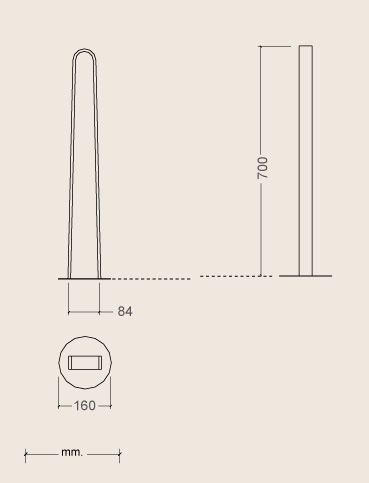 • Udformet af en 8 mm tyk stålplade, der er buet og danner et omvendt "U", og svejset til den Ø160 mm cirkulære stålplade, der forankres i jorden.