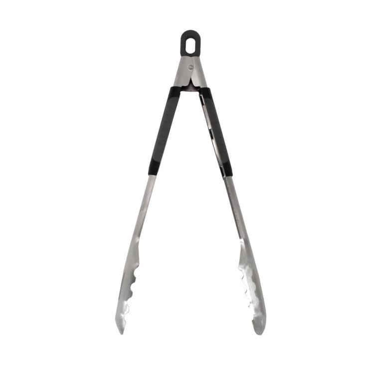 Med fjeder for nemmere brug kan du løfte, vende, dreje og transportere alt kød, grøntsager og meget mere med Char-Grillers fjederbetonede tang. Disse tang er fremstillet af rustfrit stål og har et gummibelagt håndtag for skridsikkert greb og varmebeskyttelse samt en låsekrog, så de nemt kan hænges op og opbevares.