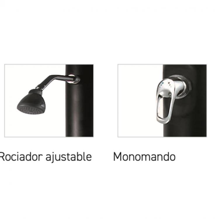 Solar Shower Curve 23L Qp Shower body in high density polypropylene. Hot and cold water taps. Maximum inlet pressure 2.5 bar.