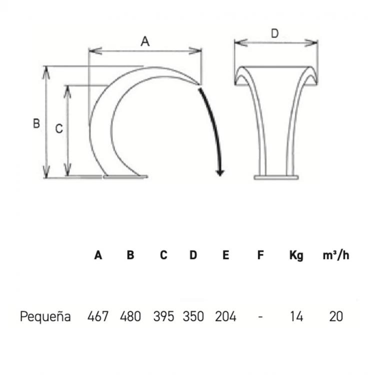 Made of high quality stainless steel. It has a water flow of up to 20m3/h. It has a mouth of 35 cm a depth of 46.7 cm and a high maximum of 48 cm. No Anchorage required. Recommended Pump 0.75 KW.