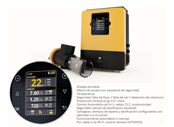 7 relays for pool control: filtration, lighting, pH 4 auxiliary.