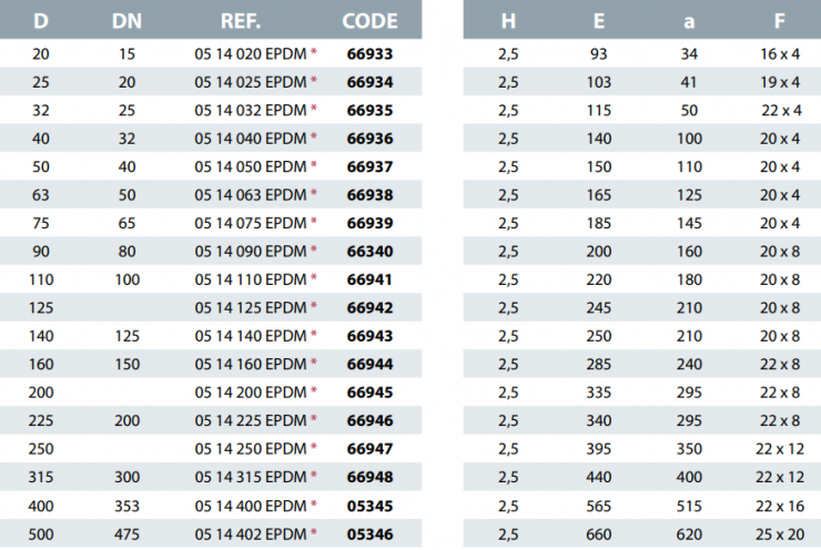Disponible en medidas desde D20 hasta D500 mm.