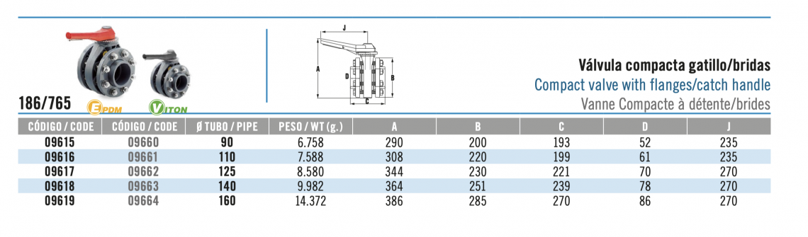 09660 Válvula Mariposa compacta gatillo bridas Viton Ø 90 8433350073691 293,09 € 3/7 D.