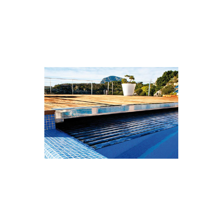 Motor sumergido dentro del eje de acero 316 con finales de carrera. Viga de acero 316 acabado brillo con anclajes. Tarima técnica o de madera tropical. Lamas de PVC o Pc. Cuando está recogida queda oculta debajo de la tarima. Nuestros motores cuentan con memoria de final de carrera, parándose automáticamente en la posición correcta de cierre y apertura. - Enrollador de acero 316 - Motor interior sumergible - Hasta 70 cm. Cuadro eléctrico - Viga de acero 316 con ángulo y soportes - Tarima de 70 cm.