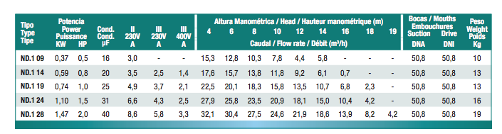 ND.1-19T Bomba PSH ND.1 1 CV - 15,8 m3/h a 10 mca - 380V 8435706102307 388,00 € 3/7 D.
