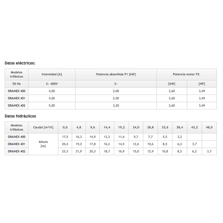 Electrobombas sumergibles para la evacuación de aguas fecales, residuales, fosas sépticas, aguas de infiltración, pluviales y, en general, aguas con carga de sólidos.