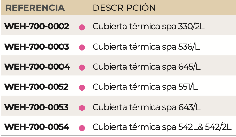 Cubierta Térmica Spas Week End solo compratible con estos modelos