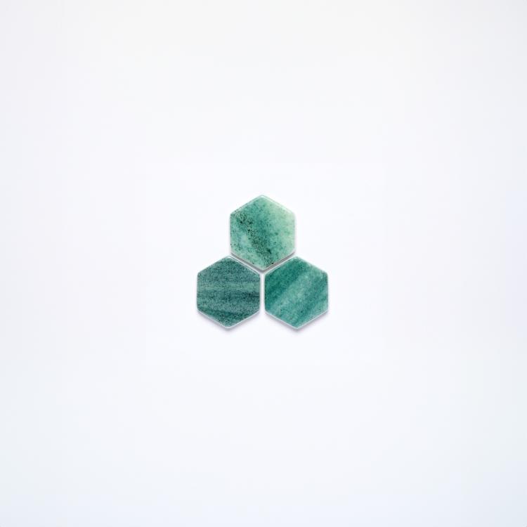 Olivine Hexa: La frescura del mosaico hexagonal verde aguamarina. Parte de la Gemma Collection, Olivine ofrece seis lados para comunicar y decorar con un tono orgánico y elegante.