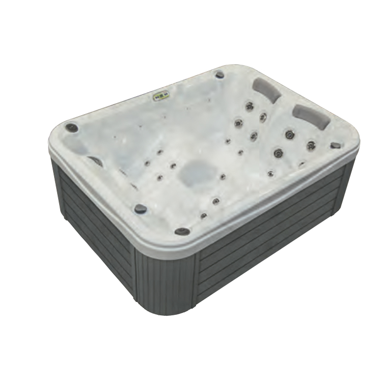 Un véritable bijou compact et exclusif, avec 2 sièges allongés côte à côte, enveloppant un troisième situé de l'autre côté. Les lumières LED qui suivent la ligne d'eau ajoutent une touche magique.