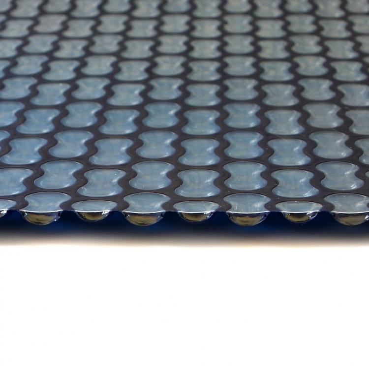 Nowy czarny koc termiczny EnergyGuard pozwala zmaksymalizować temperaturę w basenie, jednocześnie hamując rozwój glonów. Dzięki temu innowacyjnemu, lekkiemu materiałowi filtracyjnemu zoptymalizujesz temperaturę i zaoszczędzisz na środkach chemicznych. Poprawiając gromadzenie energii słonecznej i hamując wzrost glonów, materiał ten osiąga najbardziej efektywną równowagę między gromadzeniem energii słonecznej a redukcją zużycia środków chemicznych i czasu filtracji. W ten sposób staje się najbardziej innowacyjną pokrywą do tej pory. Granatowa warstwa bąbelkowa materiału została zaprojektowana tak, aby pochłaniać promieniowanie UVA i światło widzialne niezbędne do fotosyntezy. Pozwala ona również na transmisję fal podczerwonych przez materiał w celu bezpośredniego ogrzania masy wody. Selektywne właściwości transmisyjne czarnego koca termicznego New EnergyGuard zwiększają temperaturę wody w wydajny i zrównoważony sposób. Testy przeprowadzone w Wielkiej Brytanii wykazały wzrost temperatury nawet o 5°C, a uważa się, że w cieplejszym klimacie wartość ta może sięgać nawet 7°C. Nieprzezroczystość materiału przy widzialnych długościach fal hamuje wzrost glonów. Ponadto zdolność powłoki do blokowania światła ultrafioletowego oznacza, że mniej chloru jest tracone w wyniku fotolizy. Skutkuje to oszczędnością środków chemicznych i skróceniem czasu filtracji.