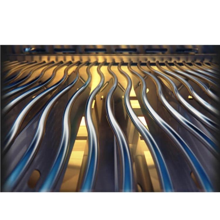 Grill gazowy Prestige® 500 ze stali nierdzewnej z tylnymi i bocznymi palnikami na podczerwień to dynamiczna ewolucja w dziedzinie grillów, która zapewnia jeszcze lepsze wrażenia z grillowania. Większy palnik do pieczenia na rożnie i boczny palnik podczerwieni w stacji do pieczenia poprawiają wydajność grilla. Pokrętła sterujące LED świecą się, umożliwiając korzystanie z grilla w nocy, i są wyposażone w funkcję SafetyGlow™, która świeci na czerwono, gdy gaz jest włączony, zapewniając większe bezpieczeństwo. Składana półka podgrzewacza pozwala utrzymać porządek, a ukryte haczyki na przybory kuchenne zapewniają więcej miejsca do przygotowywania posiłków. Ciesz się nowoczesnym, eleganckim designem i unikalnymi metodami gotowania, które już pokochałeś, dzięki temu nieodpartemu grillowi gazowemu Prestige® 500.