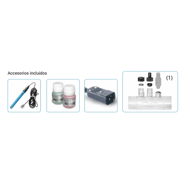 • Uchwyt sondy z wlotem dla zintegrowanego zaworu wtryskowego pH-minus w standardzie (tylko w urządzeniach ze zintegrowaną kontrolą pH lub PH/ORP).