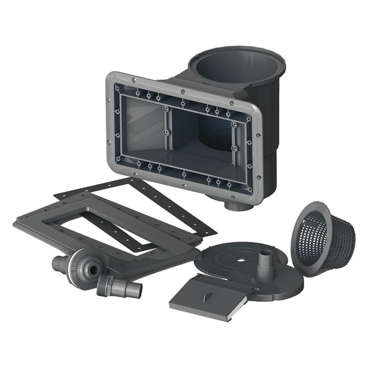 Kit complet care include un sistem de filtrare cu nisip de 6 m³/h cu mediu filtrant, liner 60/100, scară de acces și prelată de protecție.