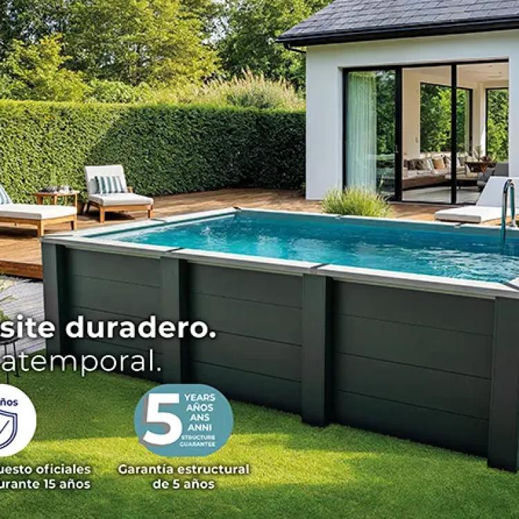 Piscină din material compozit Gre Avantgarde Nova, de formă dreptunghiulară, cu dimensiunile de 455 x 315 cm.