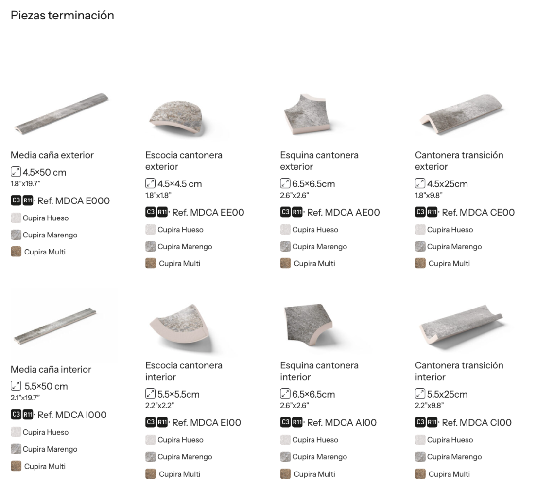 Colț de tranziție interior: Culori Hueso, Marengo, Multi - Disponibil C3 OUT Antiderapant - Dimensiuni 5,5x25 cm - Cutie 8 unități = 2 metri liniari