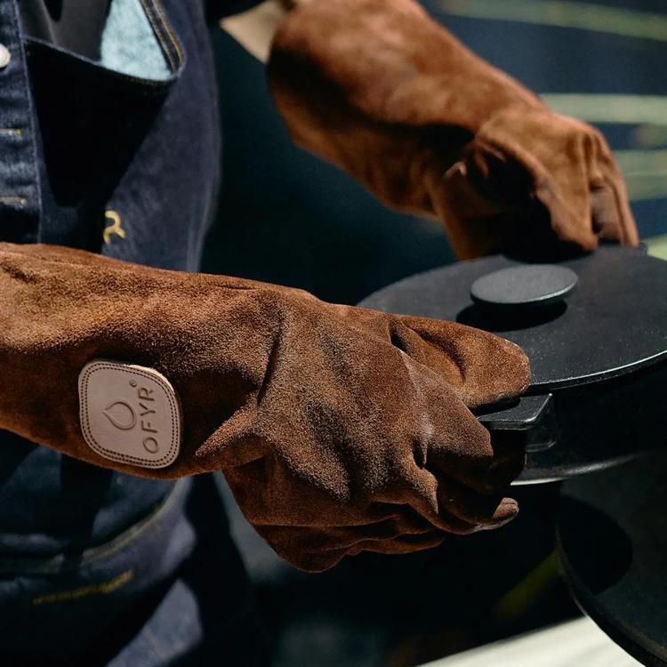 Every ambitious chef needs a pair of heat-resistant gloves. OFYR gloves are made of suede and offer heat resistance up to 250°C, making them ideal for cooking over the open fire of OFYR units or for safely handling hot accessories.