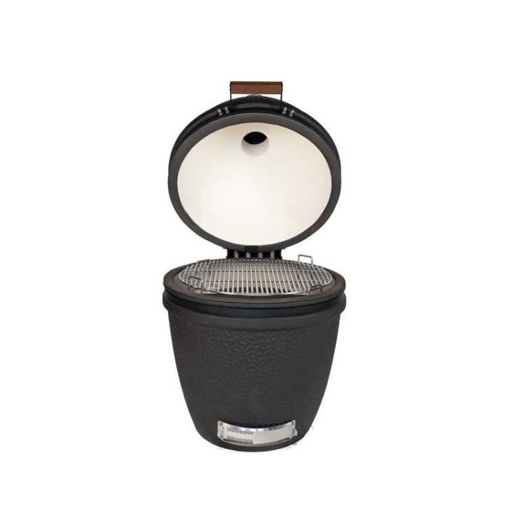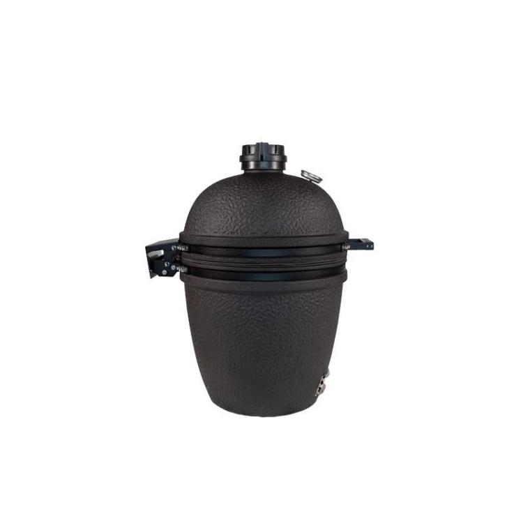 Made from the highest quality industrial ceramic, 100% resistant to extremely high temperatures. The rest of the Kamado parts are made of stainless steel or hardened steel finished with a powder coating for maximum durability in any climate.