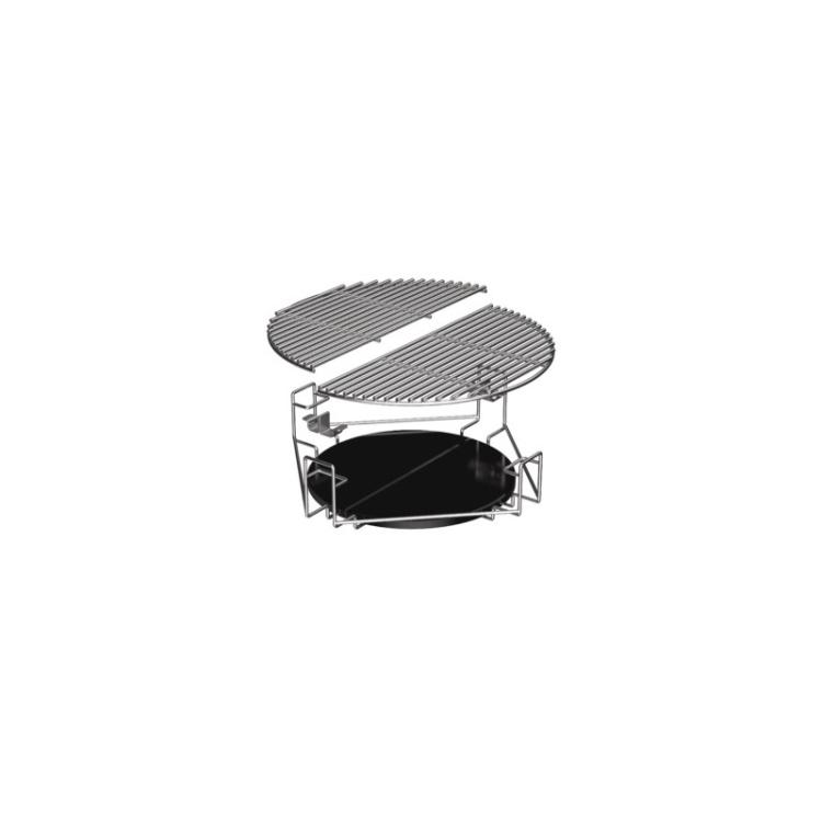 Includes: Plate base, ceramic deflector, stainless steel charcoal basket and stainless steel ash collector.