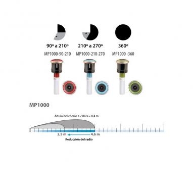 The MP Rotator MP3000 nozzle has a range of 6.7 to 9 metres.