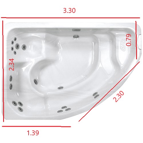 The Spa model Calspas Triangular, is designed for hotels, gyms, community of owners or individuals having this last one a use even as minipiscicina for the little ones of the house without air conditioning, or who want to have a mini pool of thermal hot water for their customers. It comes ready for embedding.